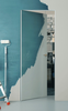Каркасная дверь Hausdoors с зеркалом на лицевой части, с другой стороны под покраску, открывание наружу. Полотна изготавливаются с фабричной фрезеровкой под замок 196 мм и петли AGB Eclipse 2.2. Со стороны зеркала предусмотрено одно или два отверстия - под ручку и фиксатор/цилиндр. Рекомендуется к установке ручка на круглой розетке диаметром не менее 52 мм.