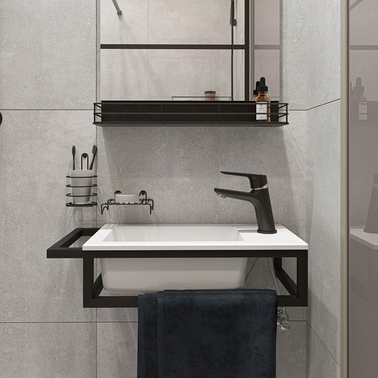 - Консоль Diwo Элиста 60 цвет "черный муар" с раковиной из искусственного мрамора Madera Modul 50.