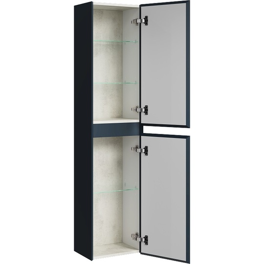 Пенал Aqwella Geometria 35 оснащен двумя дверцами на петлях с мягким закрыванием, внутри расположены полочки. Фасады и боковины с обработкой торцов под углом 45 градусов создают лаконичность и изящный, почти монолитный силуэт в закрытом состоянии. Все грани имеют округлую фрезеровку, обеспечивая приятные тактильные ощущения при открывании. Внутри - отделка под светлый камень.