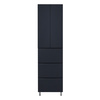 Пенал Azario Эстима оснащен двумя распашными фасадами на доводчиках, за которыми спрятаны две полочки, и тремя выдвижными ящиками без доводчиков. Пенал установлен на хромированные ножки. Корпус изготовлен из ЛДСП, фасады МДФ толщиной 16 мм. Корпус и фасады производства Kronospan. Бока и фасады крашеные итальянской эмалью.