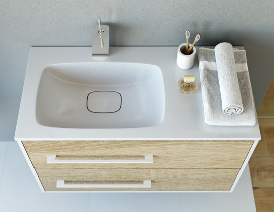 - Тумба Aqwella Майами 90 L/R цвет "дуб сонома" с раковиной из литьевого мрамора Aqwella Malaga 90 L/R.