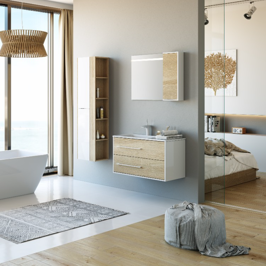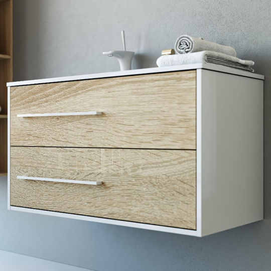 Подвесная тумба Aqwella Майами 90 оснащена двумя ящиками. Корпус тумбы из ЛДСП, окрашенного белой глянцевой эмалью. При изготовлении фасадов применяется технология нанесения кромки на ЛДСП с помощью лазера, что обеспечивает высокую влагостойкость мебели. Направляющие ящиков с функцией плавного и мягкого закрывания. Левая/правая ориентация.