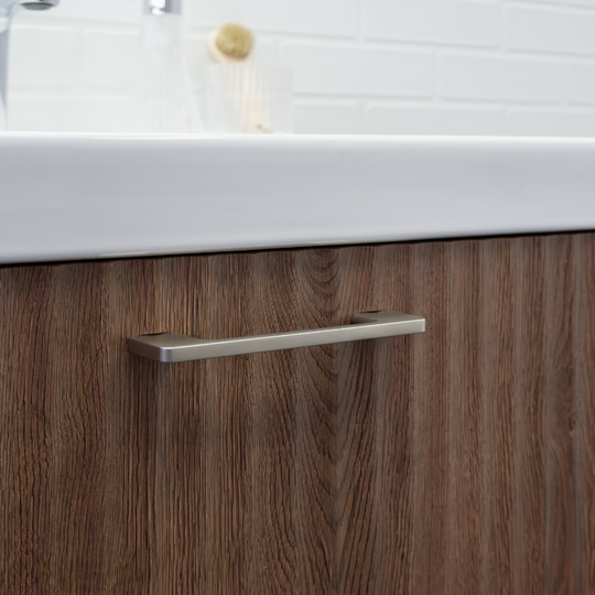 Тумба Comforty Ангара 90П оснащена двумя выдвижными ящиками с системой плавного закрывания. Фрезеровка фасадов выполнена в дорической форме. Внутренние детали тумбы выполнены из влагостойкого ЛДСП. Металлические ручки скобы под естественный хват цвета "жемчужный никель". Тумба подготовлена для подключения водоснабжения сзади и снизу.