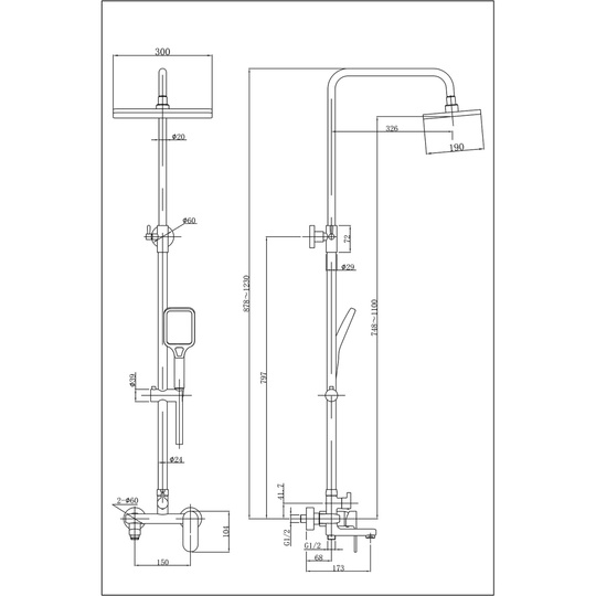- Верхний душ прямоугольный 19х30 см, материал ABS-пластик;